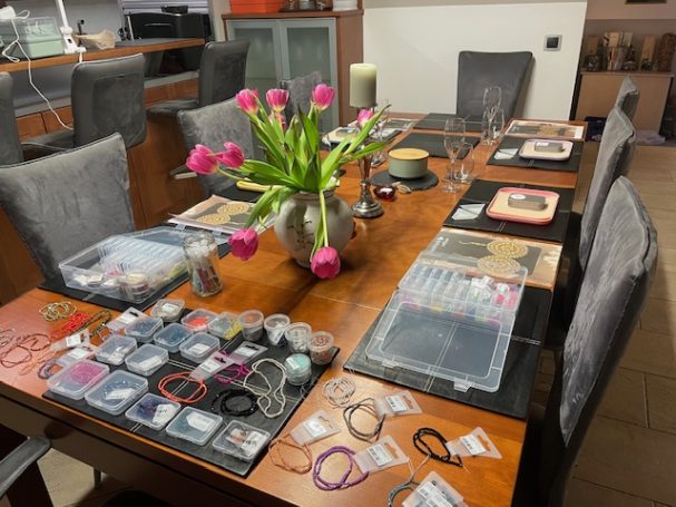 Perlenworkshop für Anfänger in Lebring. Es sind wahre Kunstwerke entstanden.