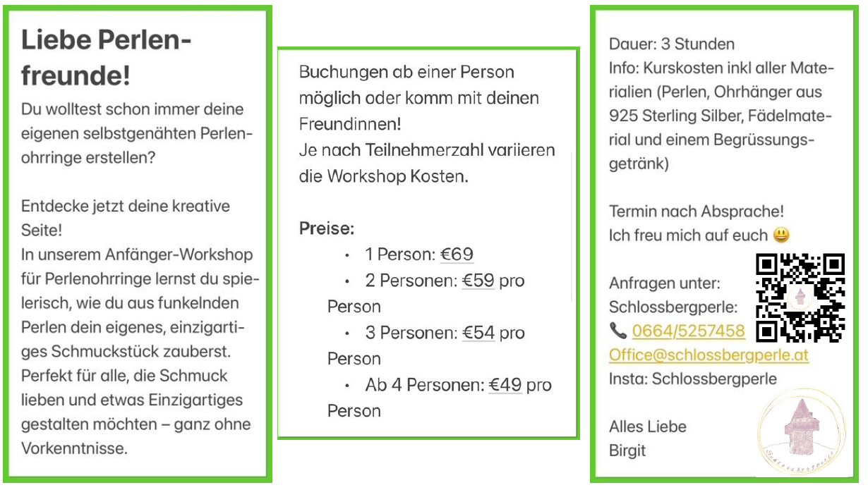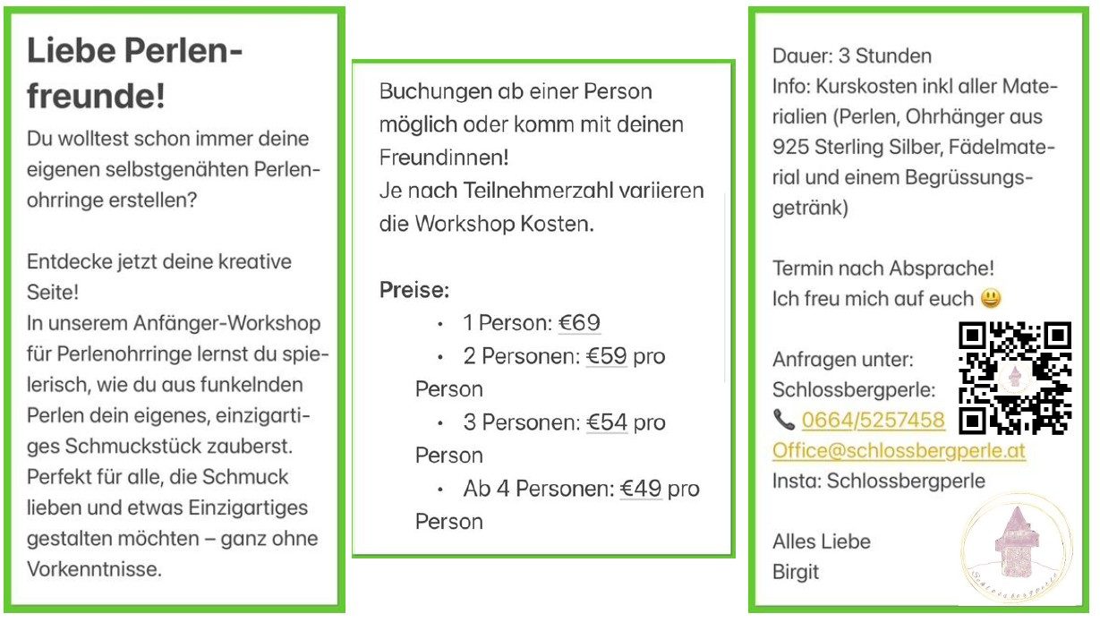 Bei Interesse, melde dich per mail unter office@schlossbergperle.at oder ruf mich an +43664/5257458!