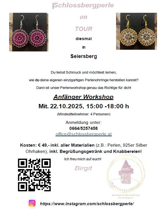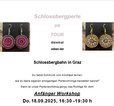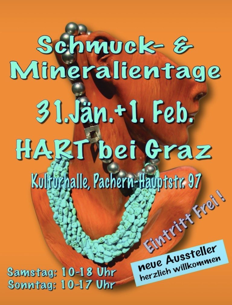 Die Schlossbergperle ist bei den Schmuck- und Mineralientagen in Hart bei Graz anzutreffen. Ich freue mich über euren Besuch!